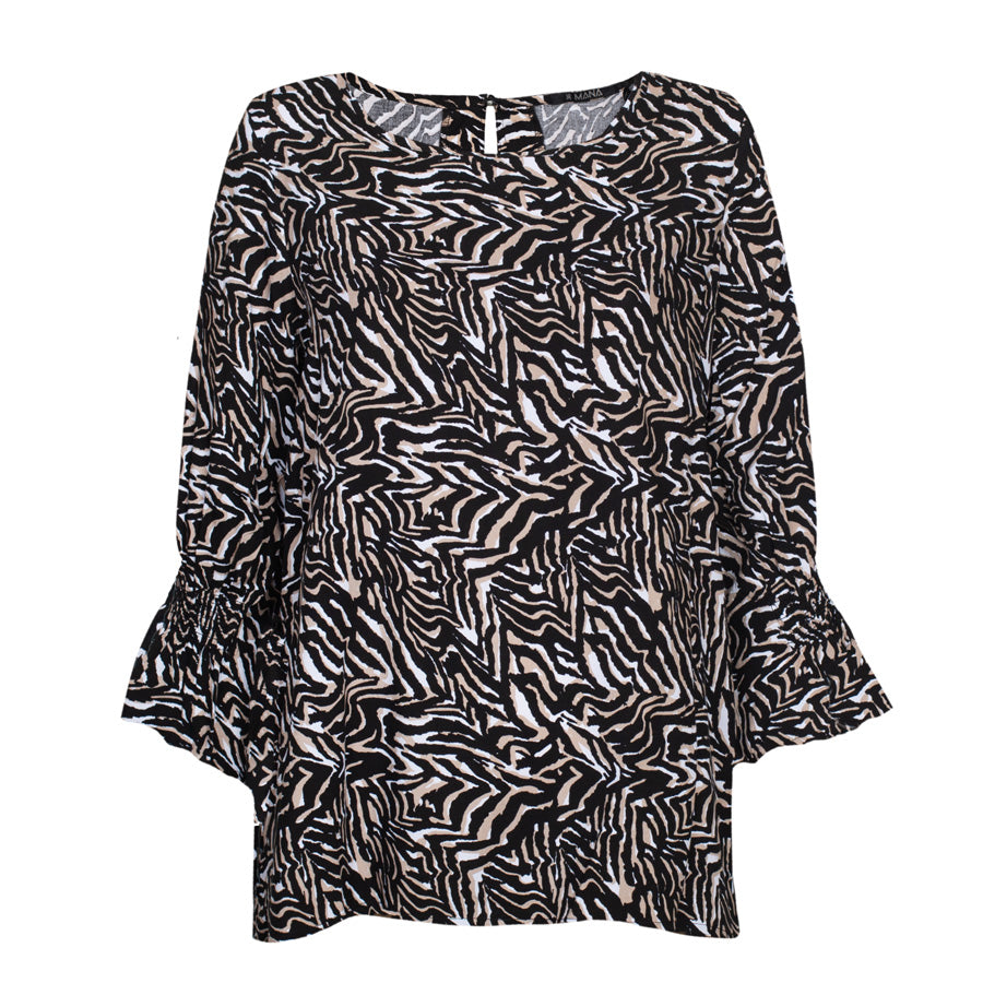Ez a női 3/4 ujjú póló kifinomult bézs mintájával rabul ejt, amely könnyedén párosítható bármilyen stílussal. Puha viszkózból készült, kellemes légáteresztő képességet, kényelmet és laza, mégis kifinomult megjelenést biztosít.