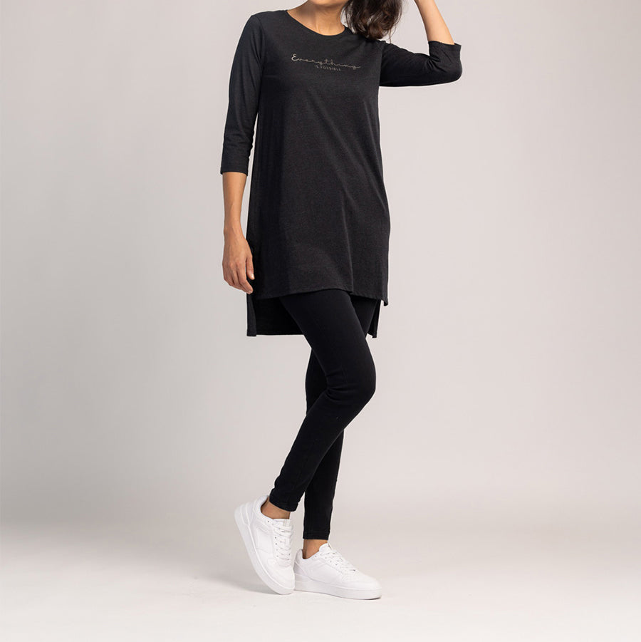 Ez a tunika sokoldalú: tökéletes önmagában, vagy leggingsszel vagy szűk nadrággal párosítva, így bármilyen alkalomra különböző stílusokat hozhatsz létre.