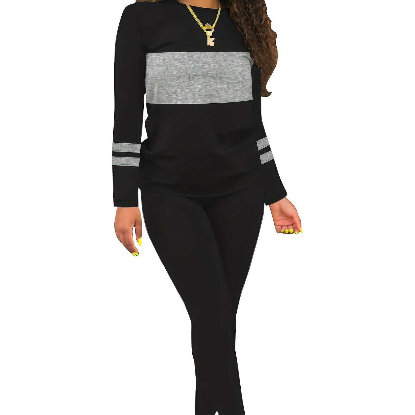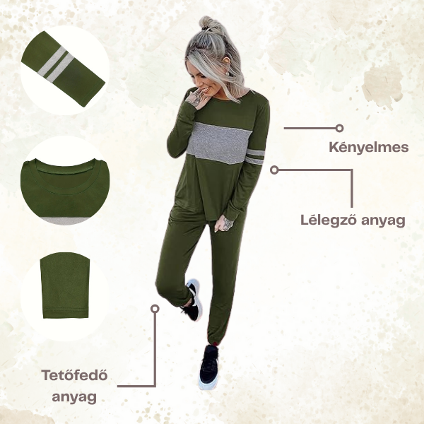 Kényelmes és stílusos kétszínű szett, amely tökéletes választás őszi-téli mindennapi viselethez.